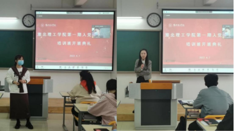 开班仪式上全体学员高唱国歌,经济学、管理学学生党支部书记员禹辛和苗青青同志在开班典礼上对参训学员系统讲解分党校培训班的培训方案、培训形式、和培训内容,并严格强调了培训班的纪律和考核方式,并要求各位学员在培训班上要学字当头,加强党史学习、提高对党认识、增强自身的理论素质,培训班在浓浓的学习氛围中正式拉开帷幕。
