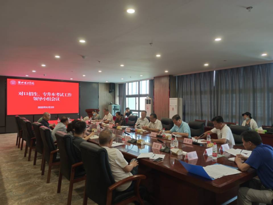 为切实做好2022年对口招生与专升本考试工作,6月2日下午,学校召开对口招生与专升本考试工作领导小组会议。学校校长杨兵、党委书记朱德顺,副校长汪建利、郑来纪以及招生办、教务处、学生处、人事处、后勤保卫处、各二级学院负责人参加会议。为保证考试期间的疫情防控措施到位,学校还邀请了杜集区卫健委副主任张平丽、杜集区人民医院副院长焦学恒、杜集区高岳街道防疫办主任谢影参加会议。