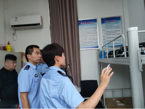 民警仔细查看了视频监控图像信息是否达到了保存期限不低于90天的规定以及防冲撞设施及防爆器材配置是否完善,后对门卫值班情况进行检查,查看值班人员是否在岗,是否认真登记外来进出人员。