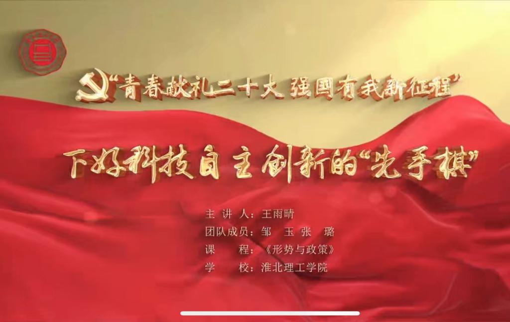 近日,安徽省首届以“青春献礼二十大,强国有我新征程”为主题的大学生讲思政课片区赛圆满落幕,经皖北片区赛激烈角逐,由beat365官网马克思主义学院孙澄澄老师指导,经管学院选送的王雨晴同学团队主讲的思政公开课《下好科技自主创新的“先手棋”》喜获二等奖,并将代表学校参加省级决赛。