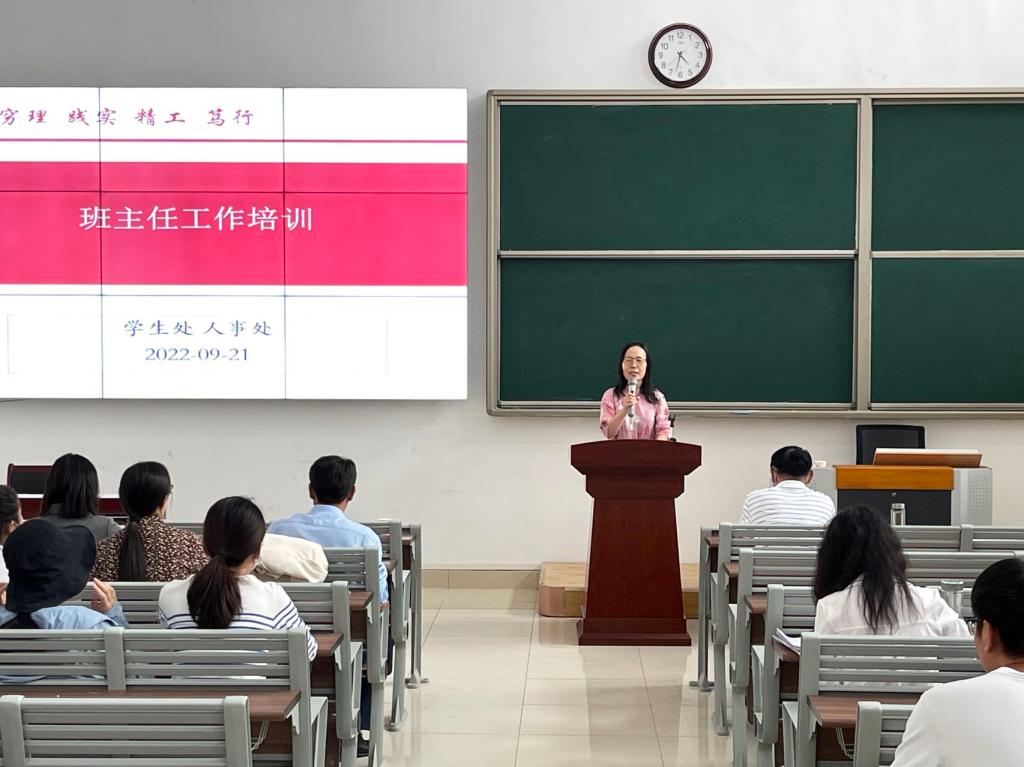 最后,孙增响从班主任的任职条件、工作职责、聘任办法以及管理与考核等四个方面为2021级、2022级学生班主任做了专题培训,并结合自身工作经历,向班主任传授了学生工作规律、工作方法等宝贵经验。