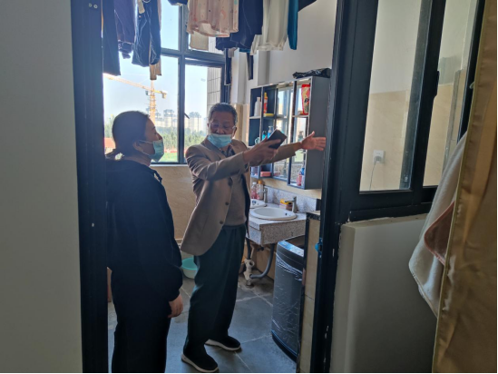 党委书记朱德顺与学生处、后勤保卫处负责人组成第二检查组,重点检查学生宿舍消防安全及卫生情况。对于检查中发现的部分宿舍存在的垃圾清理不及时、物品摆放杂乱等环境卫生问题,朱德顺要求保洁人员及时处理生活垃圾,同时就个人卫生问题对学生进行教育。