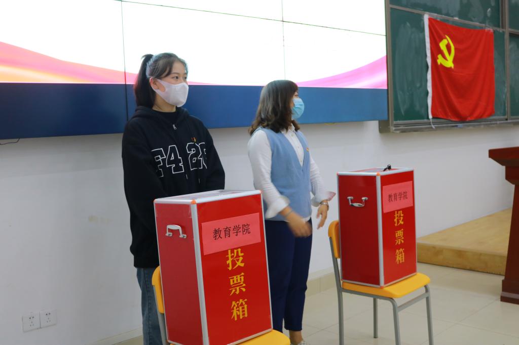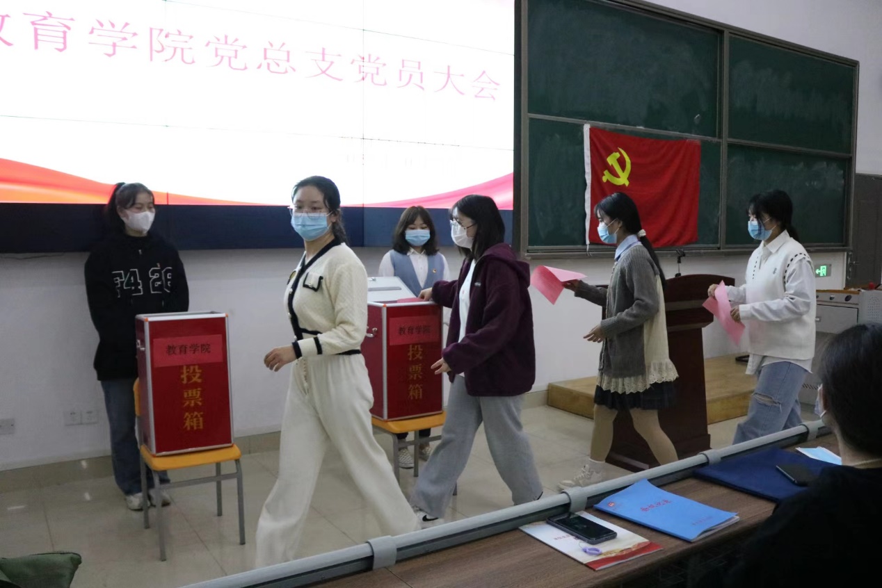 报告结束后,由工作人员宣读并通过了《中共beat365英国官方网站教育学院总支部党员大会选举办法(草案)》、通过了监票人名单、宣读了计票人名单和教育学院总支部委员会候选人情况简介。随后170名正式党员采用无记名投票的方式进行差额选举,最终选举并产生了中共beat365英国官方网站教育学院总支委员会委员5名。
