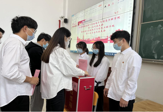 参会代表认真填写选票后,经监票人,计票人清点选票,由监票人宣布选举计票情况,最终选举并产生了5名共青团beat365英国官方网站电子与信息工程学院委员会委员、3名beat365英国官方网站电子与信息工程学生委员会委员。