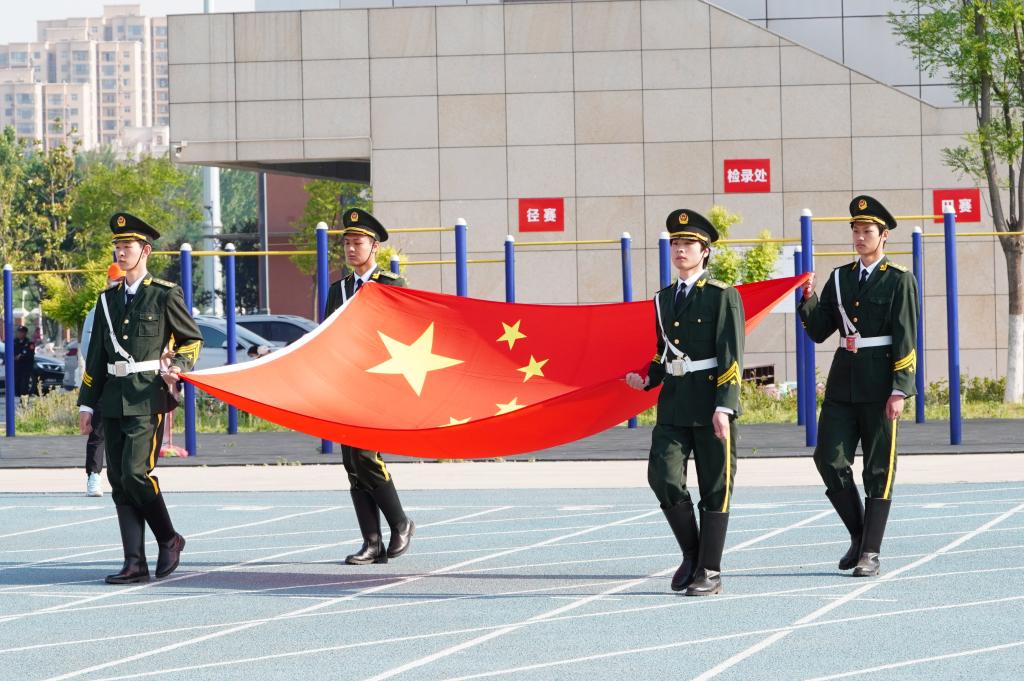 伴随着激昂的《运动员进行曲》,国旗、校旗、会旗、彩旗方队,裁判员、运动员方队依次入场,他们步伐矫健、英姿飒爽、口号响亮,展现了青年学子昂扬向上的精神面貌,绿茵场上彩旗飘扬,充分展现了学校体育工作的勃勃生机。