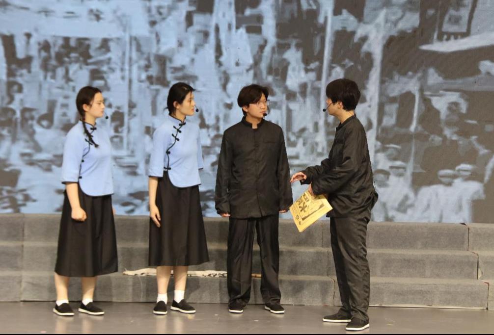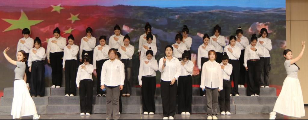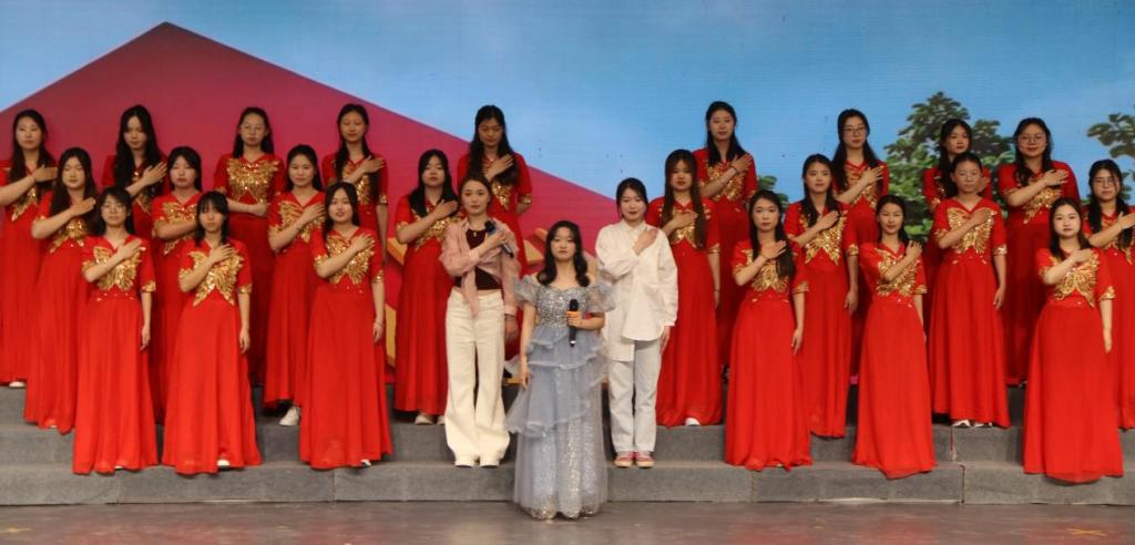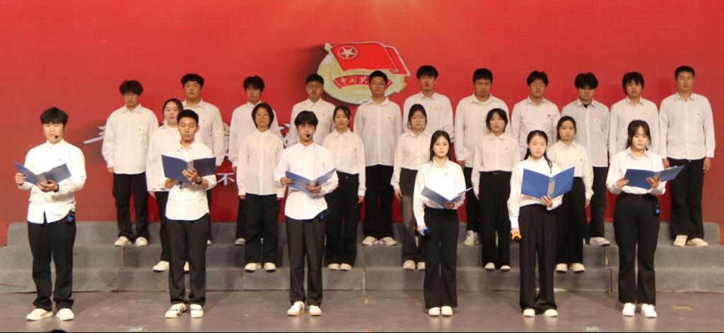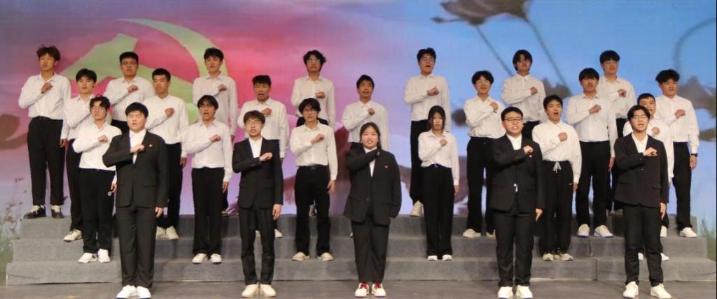 团员青年代表以饱满的热情,通过合唱、朗诵、舞台剧等演出形式,将五四精神与时代旋律紧密结合。舞台剧《觉醒年代》生动再现了百年前中国先进知识分子和热血青年追求真理,诠释当代大学生热爱祖国、积极创新、探索科学的五四爱国主义精神。诗朗诵《永远跟党走》演绎了中国共产党的诞生、发展与壮大的历程。合唱《我和我的祖国》展现了青年学生对祖国的深情厚谊和对未来的美好憧憬,号召广大青年坚定理想信念,在实现民族复兴的赛道上奋勇争先。