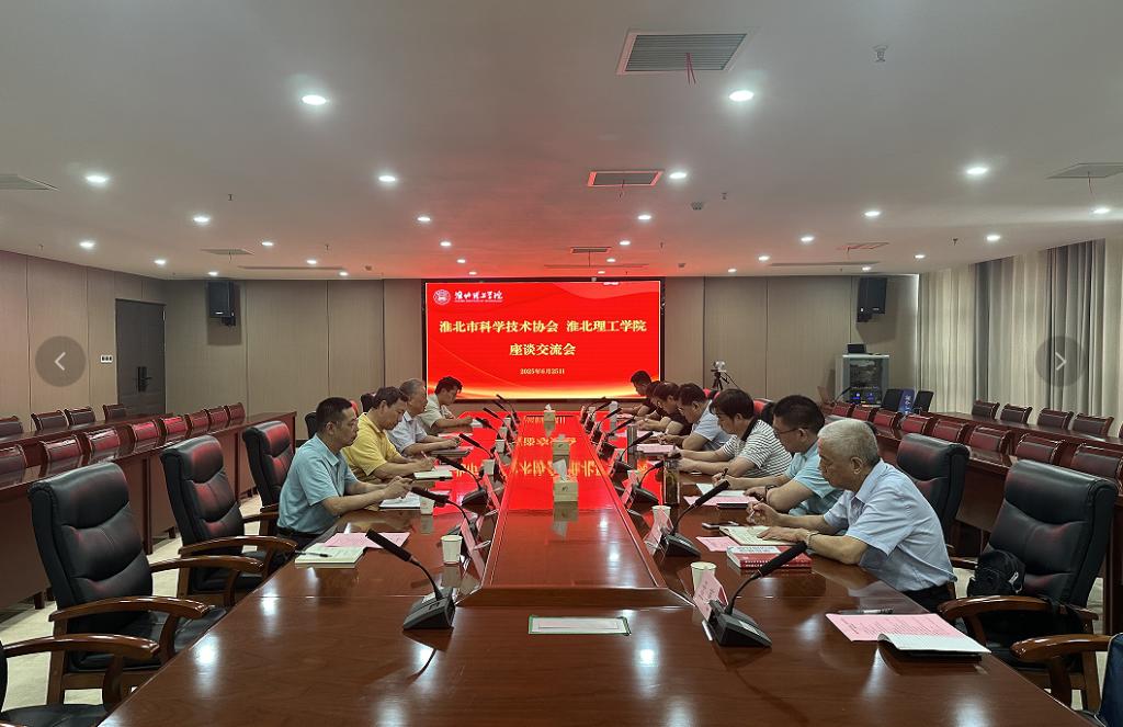 6月25日下午,淮北市科学技术协会一行来beat365官网就科协建设工作开展深入交流。市科学技术协会党组书记、主席陈经明,市科学技术协会学会部部长李春,市化工行业协会秘书长李岩,安徽省科学家企业家协会副会长兼淮北办事处主任安徽省院士专家联合会淮北办事处主任柳忠斌,市人工智能学会会长刘珂,市计算机学会会长胡祝朋,市机械电子学会会长熊伟,安徽省科学家企业家协会淮北办事处办公室副主任孟荑,beat365官网党委副书记、纪委书记、副校长汪建利及有关二级学院、职能部门负责人参加座谈。