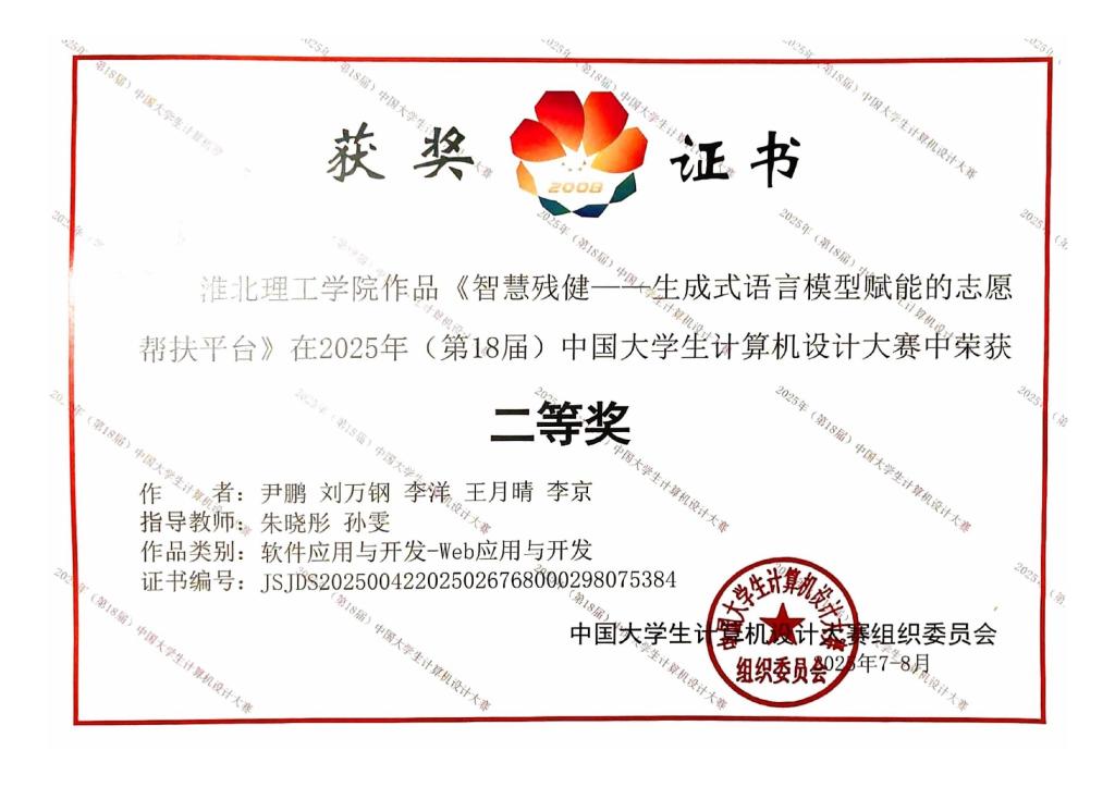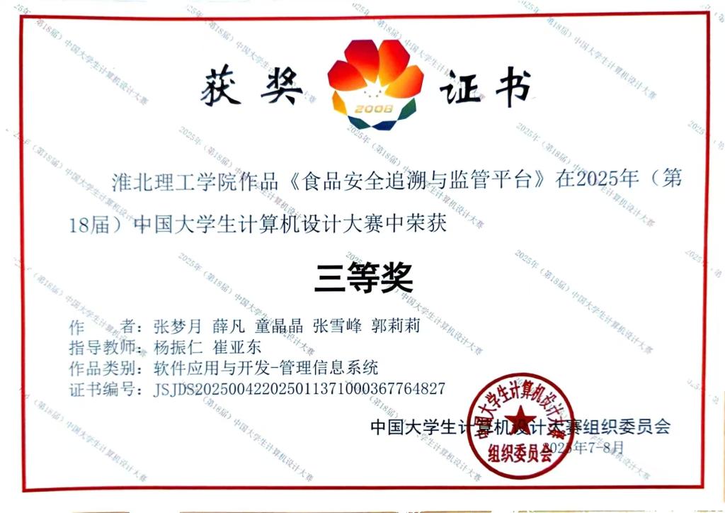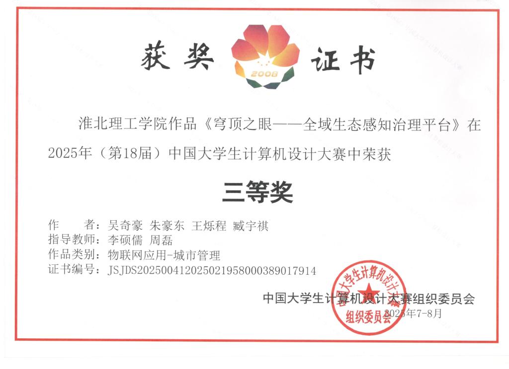 beat365英国官方网站电子与信息工程学院学子于2025年中国大学生计算机设计大赛全国总决赛中再创佳绩,凭借过硬的专业素养和突出的创新实践能力,一举拿下全国二等奖2项、全国三等奖2项,充分展现了beat365官网学子的实力与风采。