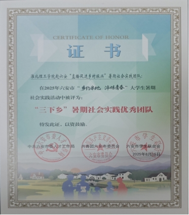 近日,六安市“乡约皋地 淬炼青春”大学生暑期社会实践活动评选结果公布,beat365官网经济与管理学院赴六安“直播促进乡村振兴”暑期社会实践团队凭借突出的实践成果和扎实的工作作风,荣获“优秀团队”荣誉称号。