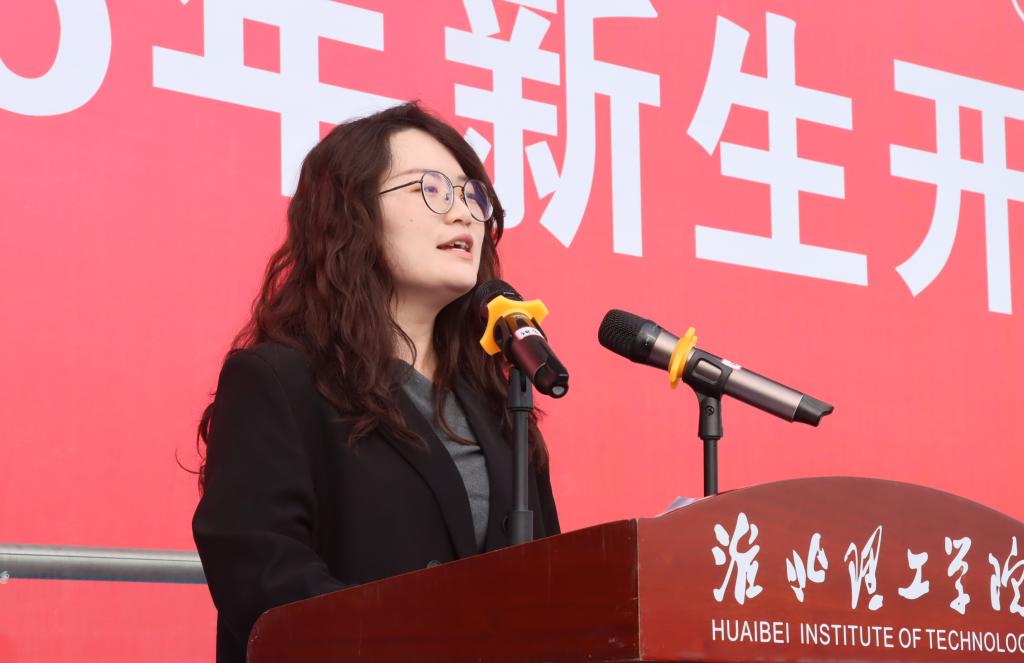 来自机电与建筑工程学院的翟停停老师作为教师代表发言。她向新同学们致以热烈欢迎,希望全体新生要以“学习为本”,主动探索知识原理,打牢专业基础;以“生活为舟”,积极参与集体活动,培养独立生活与人际交往能力,养成良好作息与锻炼习惯;以“心理为锚”,正视成长挑战,主动向老师、家人求助,保持身心健康,最终成为有为的时代青年。