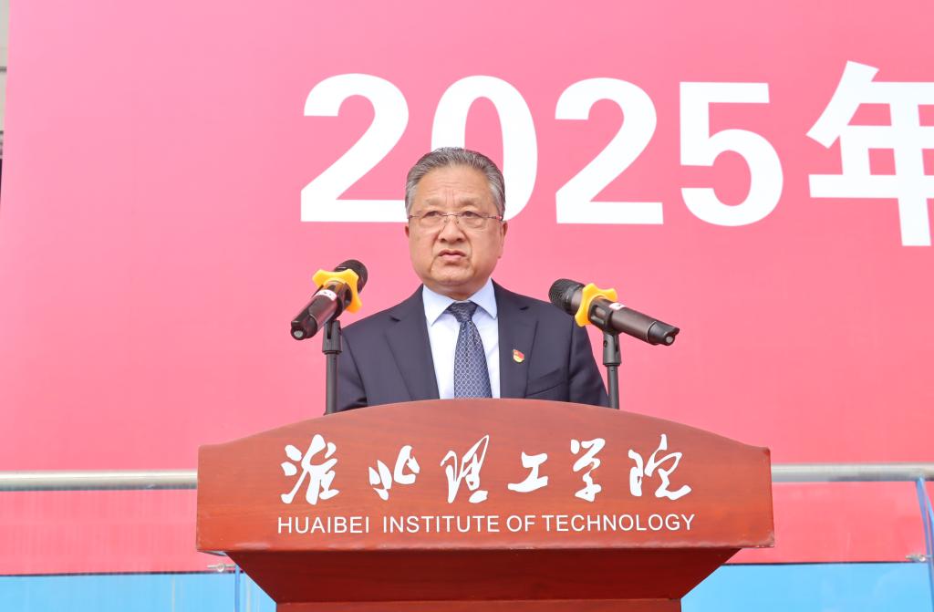 风鹏正举,逐梦启航。9月21日上午8时,学校2025级新生开学典礼暨军训总结大会在田径运动场上隆重举行。2025级全体新生身着迷彩服,以饱满的精神状态等待主席台检阅,展示训练成果。淮北市杜集区委常委、人武部政委彭利国莅临典礼现场。校党委副书记、校长杨兵,党委书记朱德顺,党委副书记、纪委书记、副校长汪建利,副校长郑来纪,各部门负责人、各二级学院院长、副院长及2025级全体辅导员参加典礼。典礼由汪建利主持。