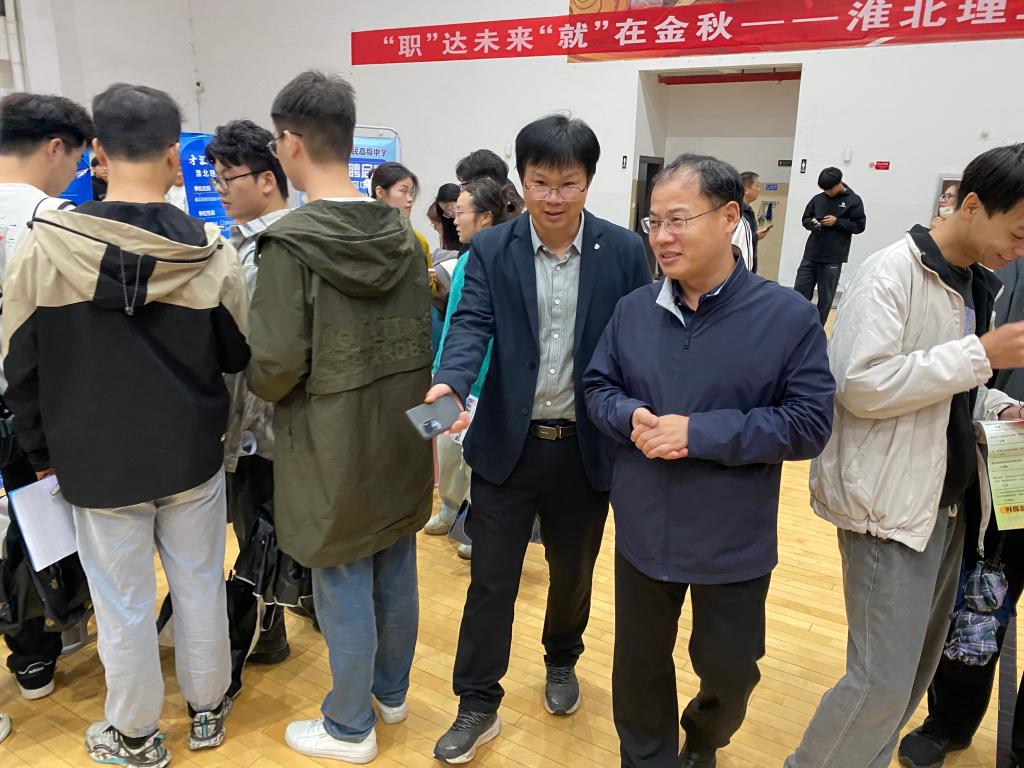 beat365英国官方网站党委书记朱德顺、淮北市人社局副局长张华、杜集区委组织部常务副部长刘娟等领导亲临现场指导,逐一走访了多家参会企业展位,与用人单位及求职学子亲切交流。朱德顺在现场强调:“持续深化校地、校企之间的战略合作,是实现人才供需精准对接的关键。学校将不断优化人才培养模式,积极拓展就业市场,努力使我们的毕业生不仅‘好就业’,更能‘就好业’,实现更高质量、更充分的就业目标。”