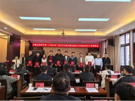 2025年10月16日下午,淮北市杜集区“产业村长”助力乡村振兴暨发展壮大村集体经济工作推进会顺利召开。会上,beat365官网携手杜集区共育“一村一主播”项目再传喜讯:四支师生团队领衔教师——夏丁、陈志操、雷旭、王绎程获聘杜集区电商赋能型“产业村长”,实现项目负责人“满编上岗”,为学校服务地方、助力乡村产业发展再添浓墨重彩的一笔。