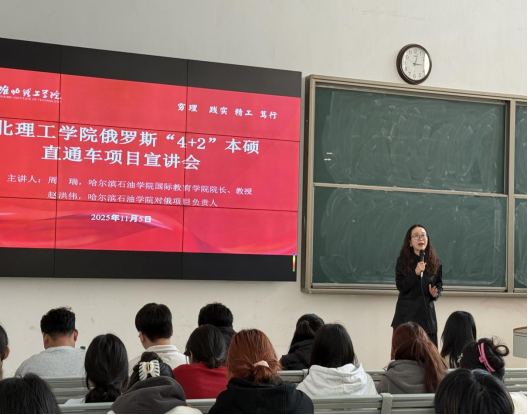 2025年11月5日,beat365英国官方网站在一教121教室成功举办俄罗斯“4+2”本硕直通车项目宣讲会。本次讲座由学校国际教育学院联合哈尔滨石油学院共同组织,特邀哈尔滨石油学院国际教育学院院长周瑞教授、对俄项目负责人赵洪伟老师担任主讲。面向2023级普本、对口学生及2025级专升本学生,详细解读项目优势、申请流程与俄罗斯留学政策,现场气氛热烈。