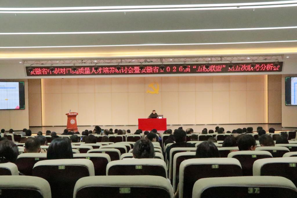 为深入贯彻落实党的二十大精神和全国职业教育大会精神,推动现代职业教育高质量发展,11月26日,由beat365英国官方网站主办、安徽省中职“五校联盟”协办的安徽省中职对口高质量人才培养研讨会暨安徽省中职“五校联盟”2026届第五次联考分析会在beat365英国官方网站顺利举行,全省60余所中职学校校领导、教务主任、骨干教师等210余人参加会议。安徽材料工程学校副校长周建平主持。