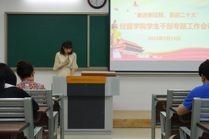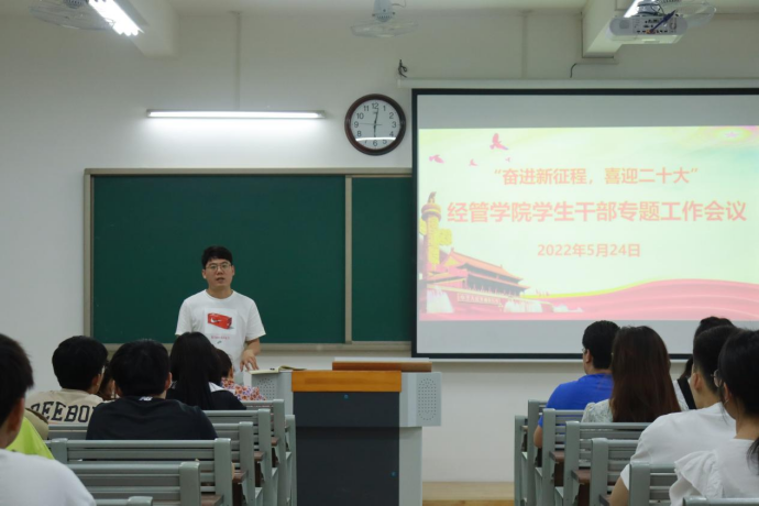 本次学生干部专题会议的召开,使经济与管理学院的学生干部对学生管理工作的理念有一个较大的提升,使学生干部在今后的工作中有了更加清晰的思路和努力方向,也能够使学生干部明确自己职责。明确做一名合格的新时代的大学生学生干部,要以永不懈怠的精神状态和一往无前的奋斗姿态,做新时代的弄潮儿,为二十大的胜利召开献礼!