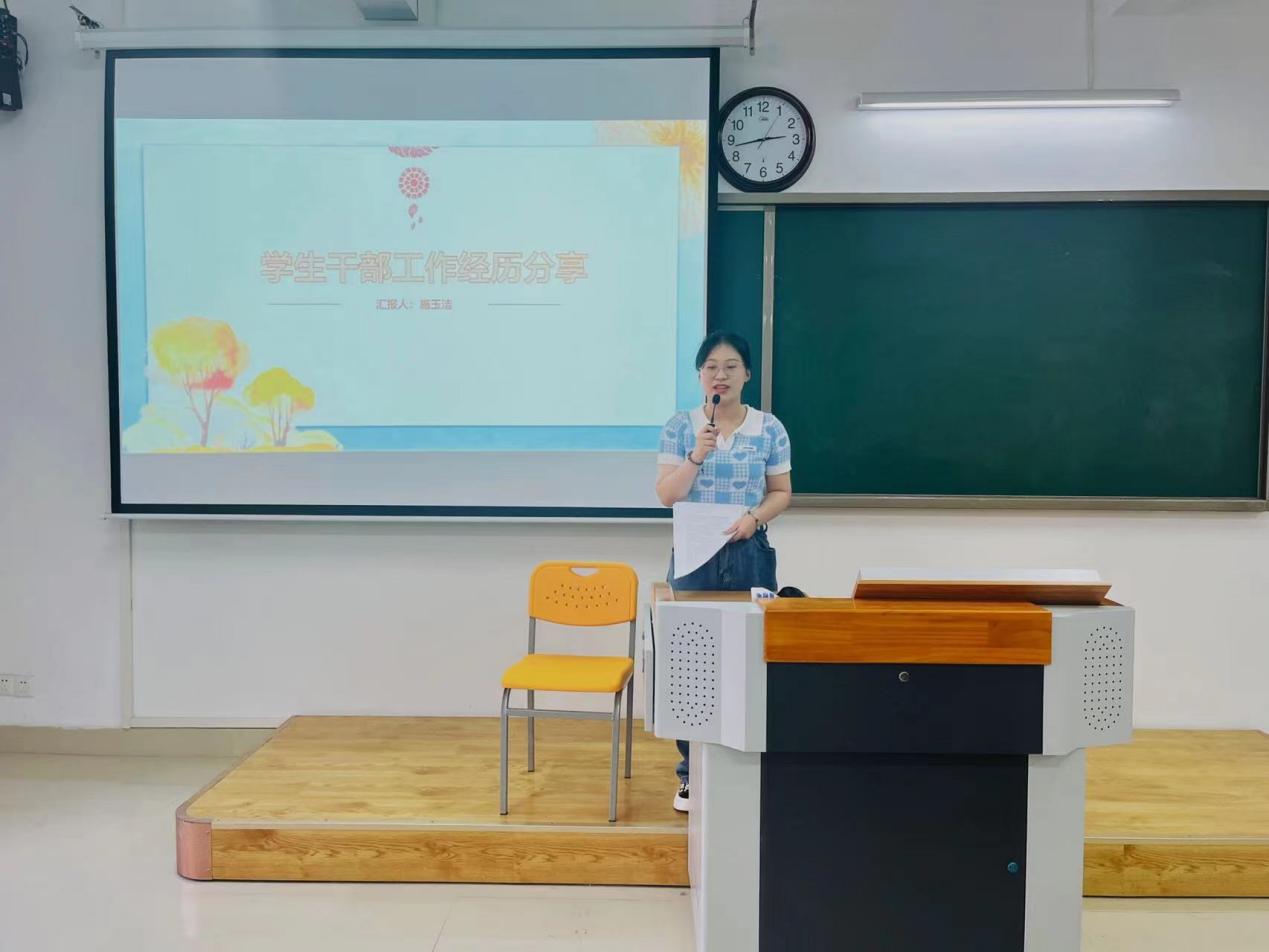 新征程扬帆起航,新使命重任在肩。为进一步加强学生干部团队建设,总结上学年团总支、学联学生会工作的经验,为新学期工作的顺利开展打下基础。教育学院于2022年9月7日下午14时30分在第二教学楼416教室召开2021-2022年度院团总支、学联学生会工作总结交流会。教育学院团总支负责人黄莹莹、辅导员彭慧敏、侯莉萍、何茹雪,2021级班长、团支书及学联学生会全体成员参加本次交流分享会。