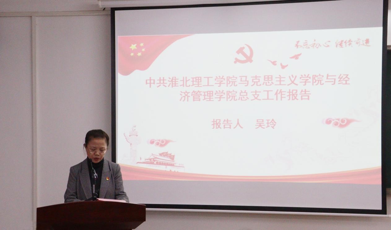 接着,吴玲同志代表学院党总支向大会作工作报告。报告回顾总结了学院党总支一年多以来取得的成绩,也指出了存在的问题和不足,提出了未来三年的重点工作及今后努力的方向和目标,展现了马克思主义学院与经济管理学院党总支砥砺前行的决心。