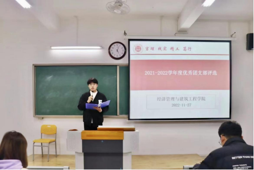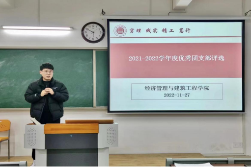 为贯彻落实学校下发的《关于做好beat365英国官方网站2021-2022学年度“优秀团支部”评选工作的通知》有关“优秀团支部”评选的文件精神,弘扬“党有号召 团有行动”的优良传统,展现团组织的向心力、凝聚力、战斗力。深入学习贯彻习近平新时代中国特色社会主义思想,激励学生刻苦学习、争优创先。经济管理与建筑工程学院于2022年11月27日,在一教215室开展2021--2022学年度“优秀团支部”评选活动。学院本着“公平、公正、公开”的原则,成立了由书记助理、团总支书记叶赵强、经济学学生支部书记、团总支副书记员禹辛、团总支组织委员、辅导员王绎程、团总支宣传委员、辅导员张雨停、团总支委员张晏五人组成评委小组,制定了考评标准。“优秀团支部”宣讲评选活动由院学生会宣传部部长韩大壮主持,2022级各班团支书到场学习观摩。