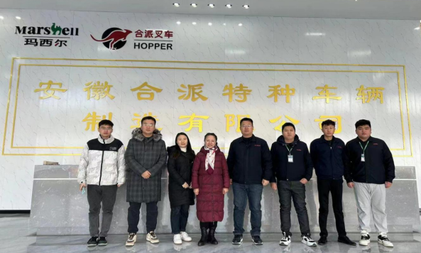 按照学院访企拓岗行动计划,12月22日上午,吴玲院长带领人力资源教研室负责人兰露老师、辅导员王绎程老师与蔡晨光老师,前往安徽合派特种车辆制造有限公司实地走访,看望2024届人力资源管理专业实习学生许诺,受到了公司总经理赵飞华、人事部经理孙忠成、公共事务部主任宋飞飞、行政部况晶晶一行人的热烈欢迎。