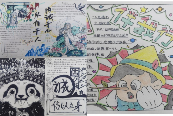 手抄报制作大赛则是让学生们通过亲手制作手抄报来表达对诚信的理解和感悟。在比赛中,学生们充分发挥创意,将诚信理念融入到手抄报的设计中。评委们根据手抄报的制作技巧、创意和内容进行了综合评定,选出了优秀作品。