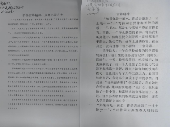 为加强学生对雷锋精神的理解,发扬中华民族传统美德,电子与信息工程学院组织“学习雷锋精神”主题征文、手抄报活动,同学们踊跃参加,共收到征文作品30余篇、手抄报作品20余幅,涌现出多幅优秀获奖作品,彰显了我院学子积极向上、热爱劳动的优良精神风貌。