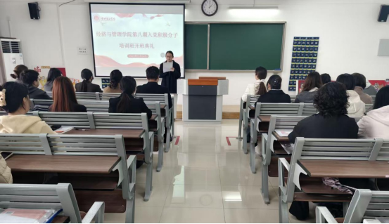 为深入学习贯彻习近平新时代中国特色社会主义思想,落实全面从严治党新要求,严把党员发展“入口关”,2025年11月14日,经济与管理学院第八期入党积极分子培训班开班典礼在二教322教室隆重举行。管理学和经济学学生党支部书记、青年委员和全体86名入党积极分子共同参加,开班典礼由郑凡主持。