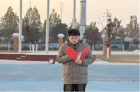 2025年11月10日,学生代表孙莹以《以今日之我,筑明日之中国》为主题进行国旗下演讲。今日之中国,是前辈们奋斗的硕果;明日之中国,待我们续写华章。作为新时代青年,我们当以理想为帆、实干为桨,在学习中锤炼本领,在实践中增长才干。不必仰望远方,脚下即是征途。让我们把青春热血融入国家发展,用每一次拼搏、每一份坚守,汇聚成强国建设的磅礴力量,以今日之我,筑就明日更加繁荣昌盛的中国。