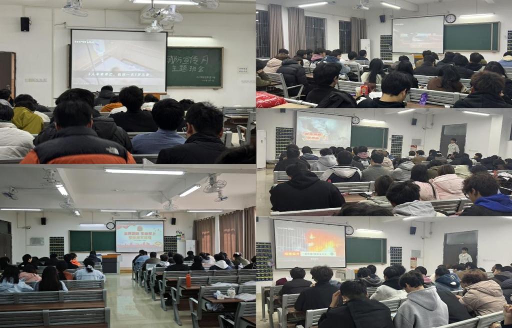 11月29日至30日,机建学院组织开展消防宣传月专题班会,共计54个班级参与,以“身边的消防风险”为切入点,通过播放宣传视频、互动讨论等形式,让学生直观掌握避险知识。