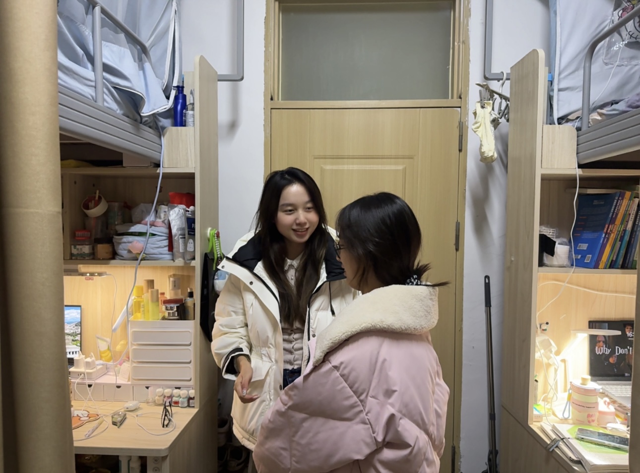 进宿舍环节,辅导员们深入学生宿舍,与学生面对面谈心交流。一方面聚焦学生心理状态,关注因期末备考、就业压力等引发的焦虑情绪,倾听学生诉求,提供情绪疏导技巧,引导学生合理规划作息、调整心态;另一方面,围绕宿舍安全隐患排查、用电安全等内容开展提醒教育,并结合近期高发的电信诈骗案例,现场讲解刷单返利、冒充客服、校园贷等诈骗手段的特点与防范技巧,叮嘱学生提高警惕,守护好个人财产安全。