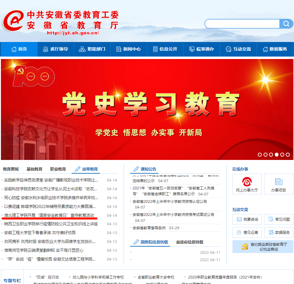 安徽省政府 安徽省教育厅 淮北市政府 淮北师范大学 淮北市教育局 中国教育和科研计算机网 国家高等教育智慧教育平台