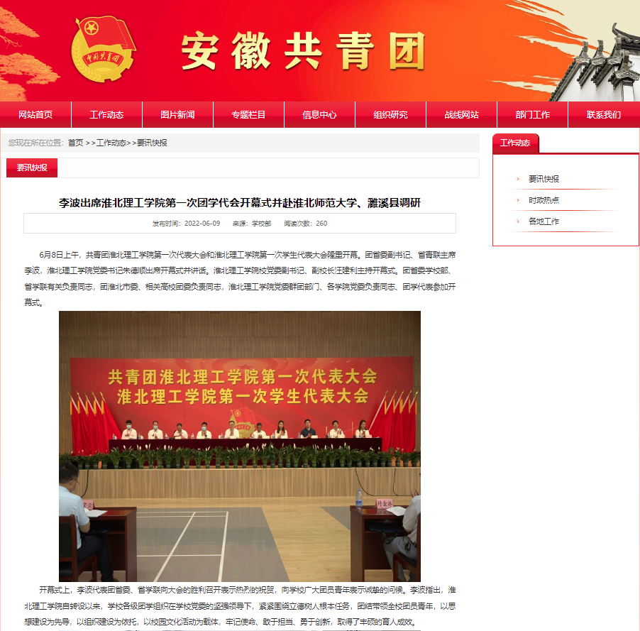6月8日,共青团beat365英国官方网站第一次代表大会、beat365英国官方网站第一次学生代表大会圆满完成各项任务,胜利闭幕。安徽共青团网对此进行了报道。