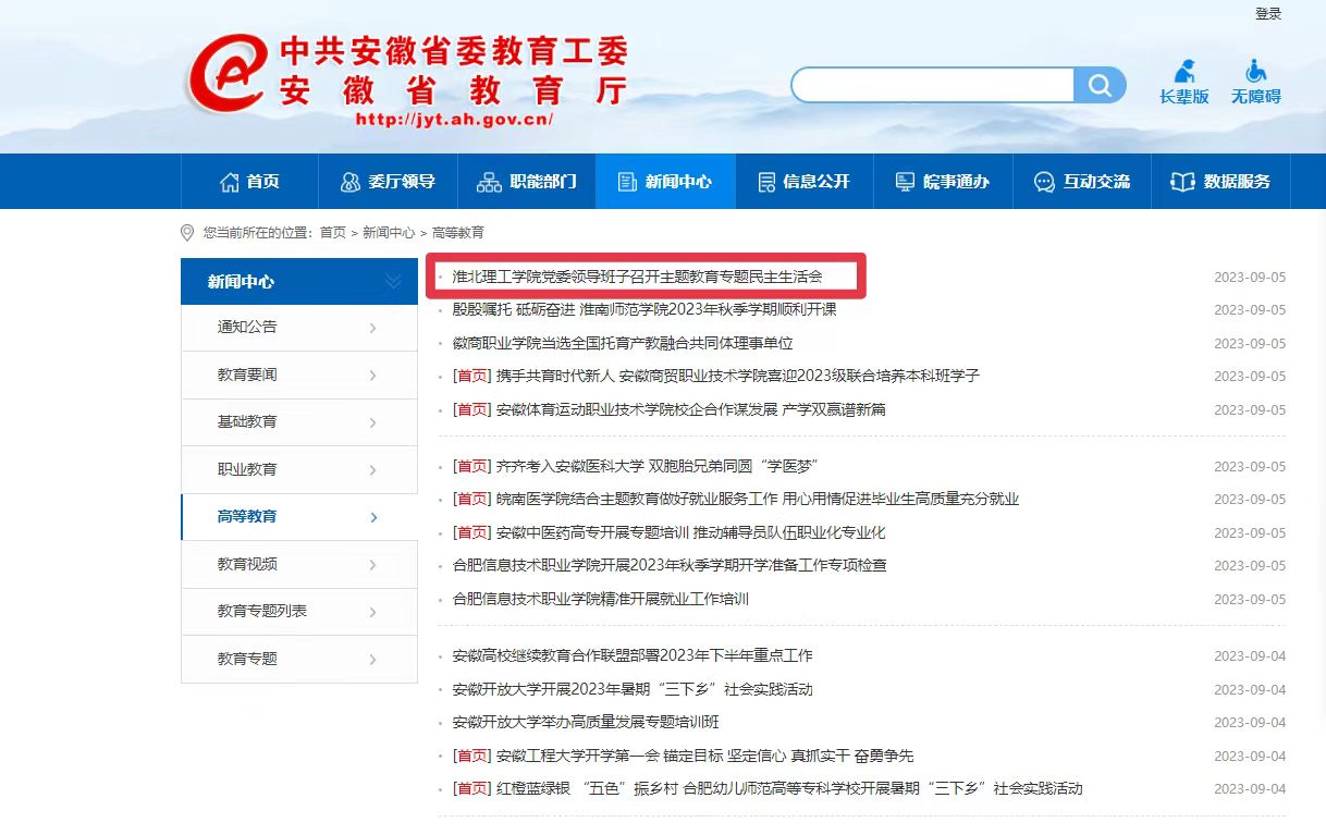 安徽省政府 安徽省教育厅 淮北市政府 淮北师范大学 淮北市教育局 中国教育和科研计算机网 国家高等教育智慧教育平台