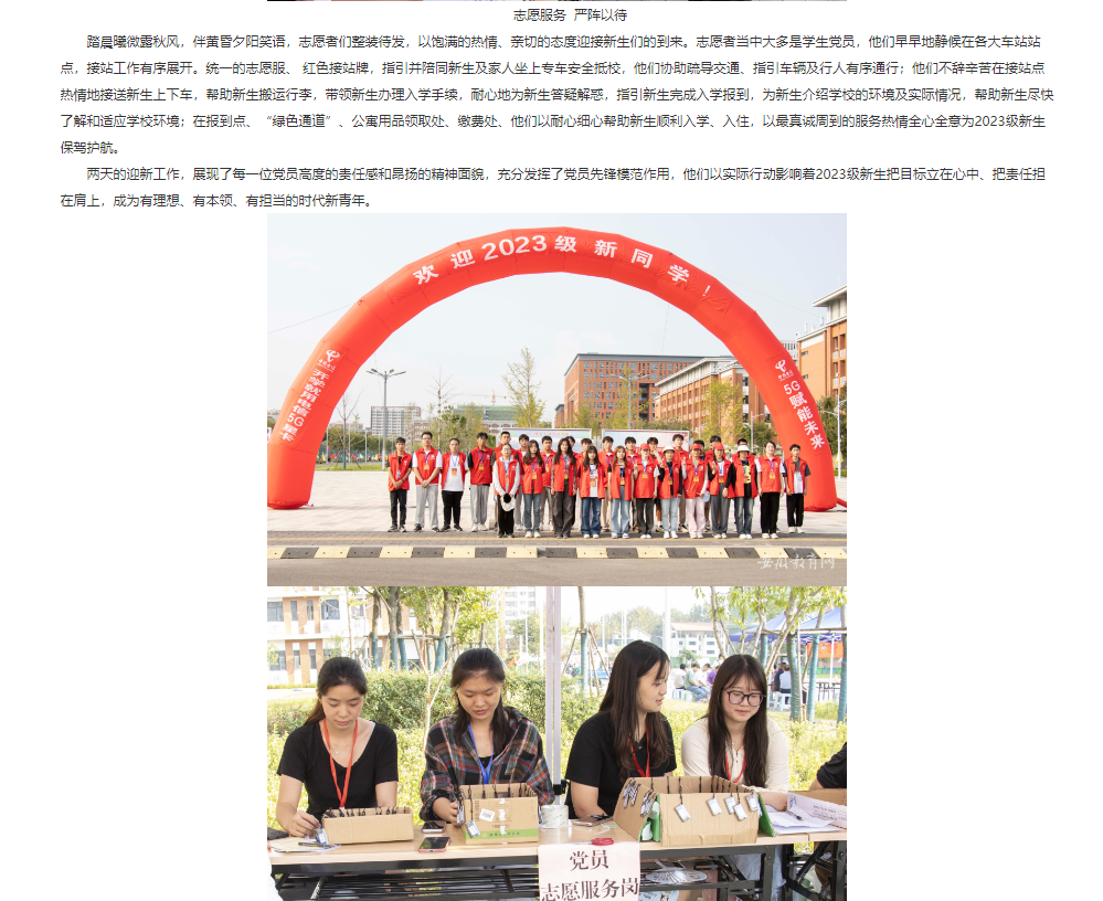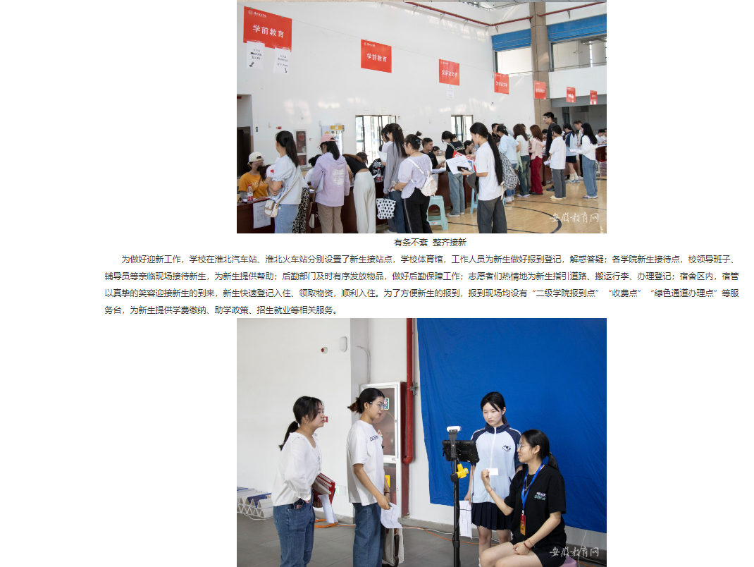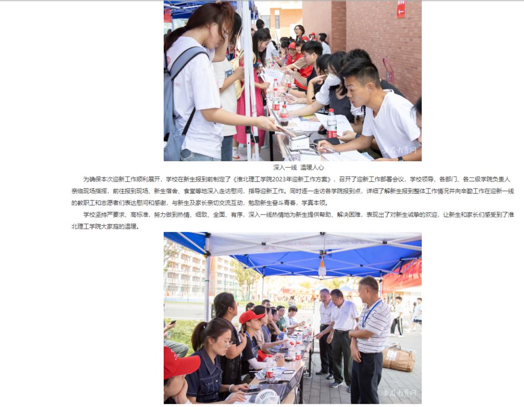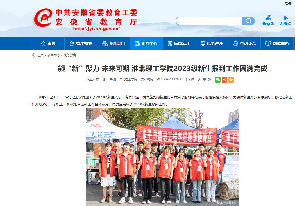 9月9日至10日,beat365英国官方网站迎来了2023级新生入学,青春洋溢、朝气蓬勃的新生们带着满心的期待与美好的憧憬踏入校园。为保障新生平安有序到校、强化迎新工作开展落实,学校上下积极配合迎新工作整体布局,高质量完成了2023级新生报到工作。对此,安徽教育网进行了报道: