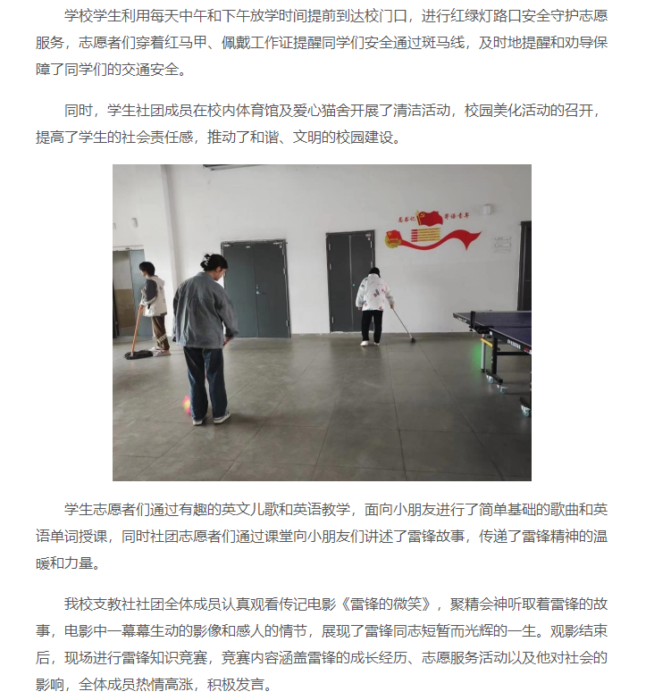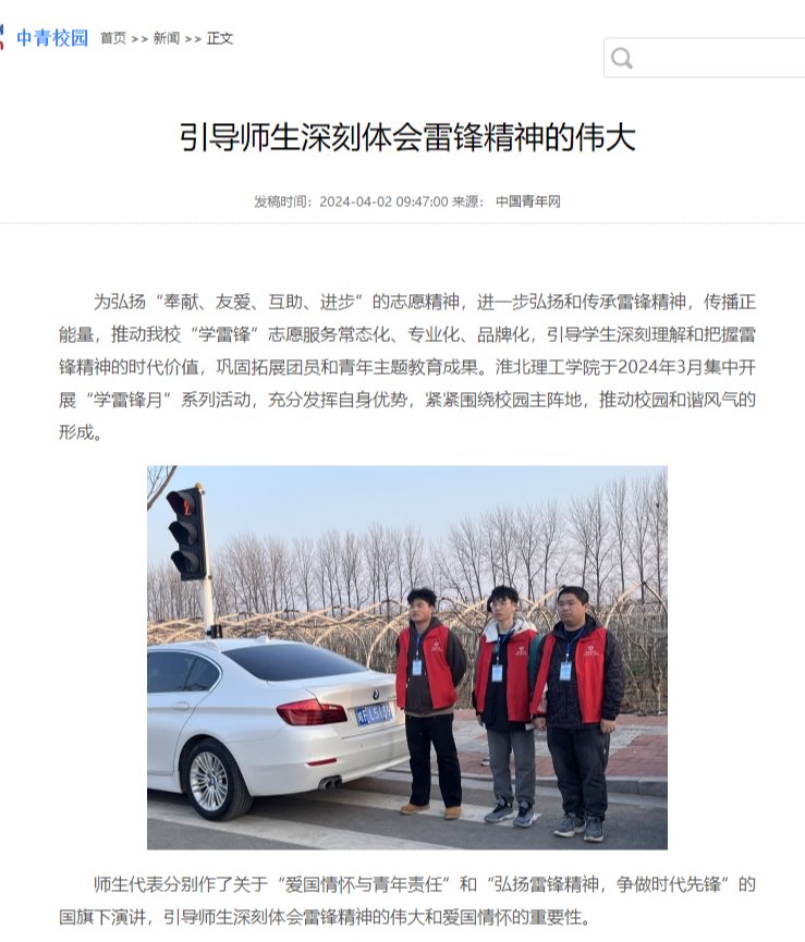 为弘扬“奉献、友爱、互助、进步”的志愿精神,进一步弘扬和传承雷锋精神,传播正能量,推动beat365官网“学雷锋”志愿服务常态化、专业化、品牌化,引导学生深刻理解和把握雷锋精神的时代价值,巩固拓展团员和青年主题教育成果。beat365英国官方网站于2024年3月集中开展“学雷锋月”系列活动,充分发挥自身优势,紧紧围绕校园主阵地,推动校园和谐风气的形成。对此,中青网进行了报道: