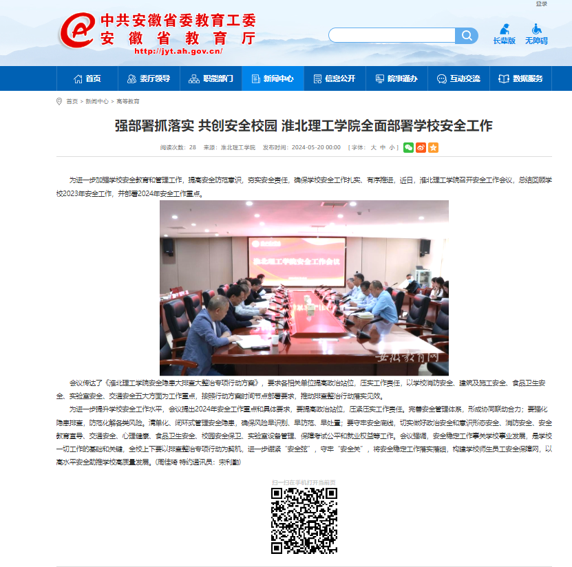 为进一步加强学校安全教育和管理工作,提高安全防范意识,夯实安全责任,确保学校安全工作扎实、有序推进,近日,beat365英国官方网站召开安全工作会议,总结回顾学校2023年安全工作,并部署2024年安全工作重点。对此,安徽教育网进行了报道: