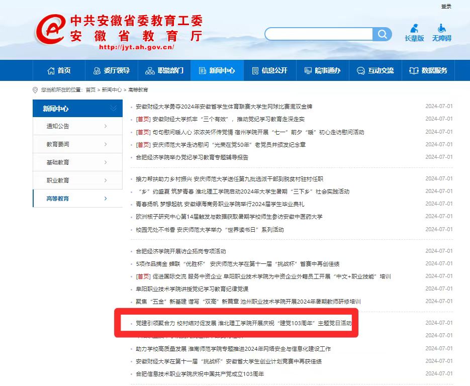 安徽省政府 安徽省教育厅 淮北市政府 淮北师范大学 淮北市教育局 中国教育和科研计算机网 国家高等教育智慧教育平台