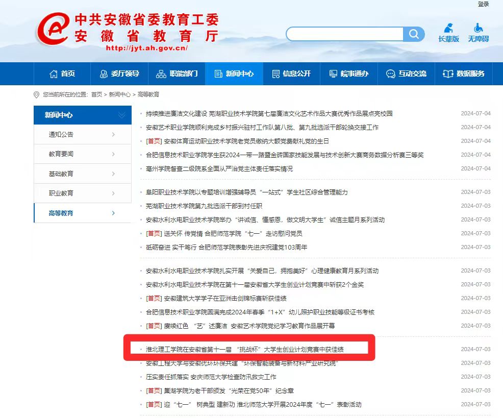 安徽省政府 安徽省教育厅 淮北市政府 淮北师范大学 淮北市教育局 中国教育和科研计算机网 国家高等教育智慧教育平台