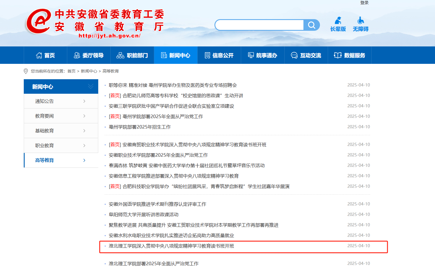 安徽省政府 安徽省教育厅 淮北市政府 淮北师范大学 淮北市教育局 中国教育和科研计算机网 国家高等教育智慧教育平台