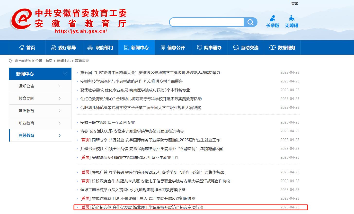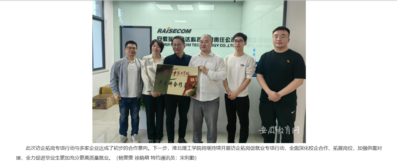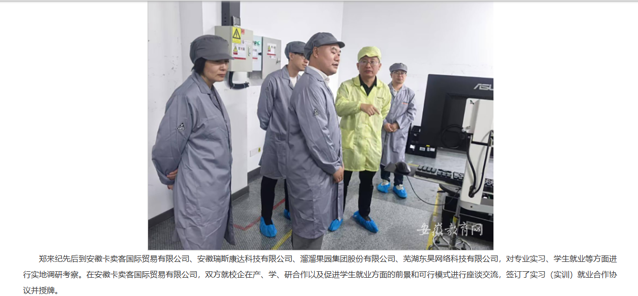 为积极贯彻落实“访企拓岗促就业”专项行动工作要求,推进毕业生更高质量就业。近日,beat365英国官方网站副院长郑来纪带队前往马鞍山和芜湖地区,开展访企拓岗促就业专项行动。对此,安徽教育网进行了报道: