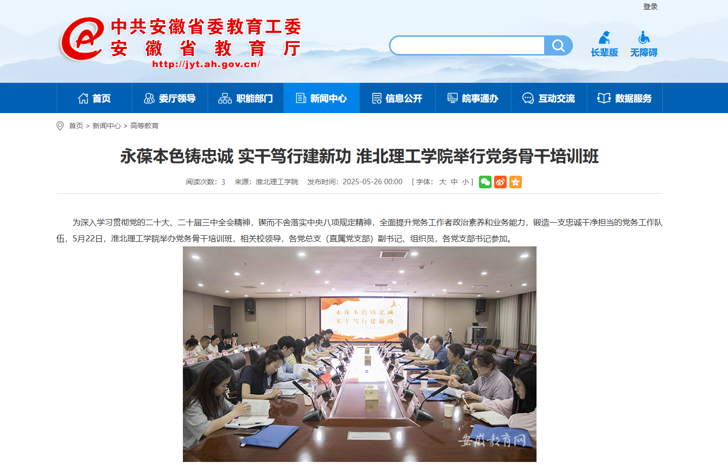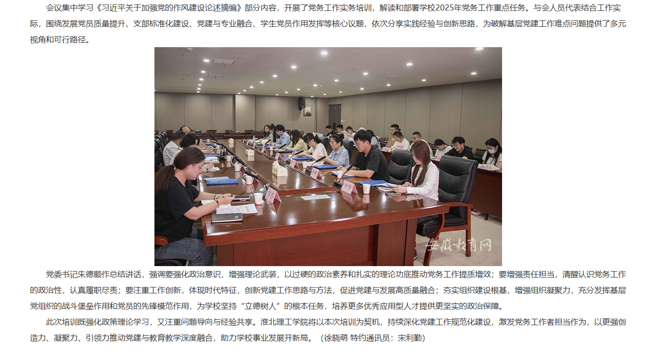 为深入学习贯彻党的二十大、二十届三中全会精神,锲而不舍落实中央八项规定精神,全面提升党务工作者政治素养和业务能力,锻造一支忠诚干净担当的党务工作队伍,5月22日,beat365英国官方网站举办党务骨干培训班,相关校领导,各党总支(直属党支部)副书记、组织员,各党支部书记参加。对此,安徽教育网进行了报道: