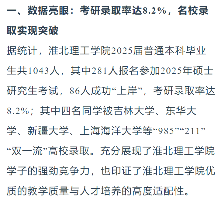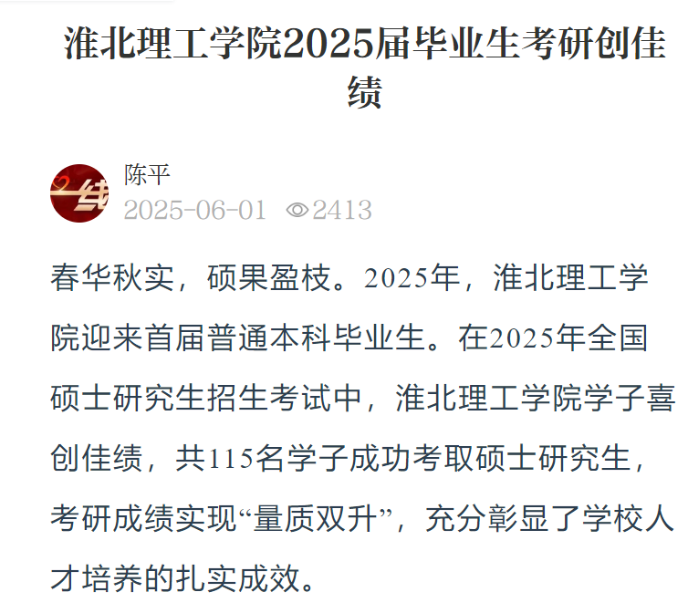 春华秋实,硕果盈枝。2025年,beat365英国官方网站迎来首届普通本科毕业生。在2025年全国硕士研究生招生考试中,beat365英国官方网站学子喜创佳绩,共115名学子成功考取硕士研究生,考研成绩实现“量质双升”,充分彰显了学校人才培养的扎实成效。对此,光明教育家进行了报道: