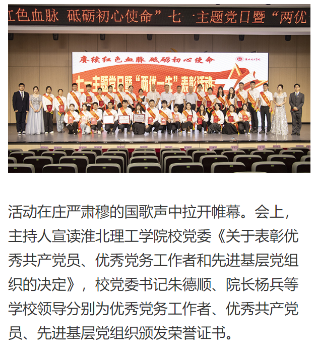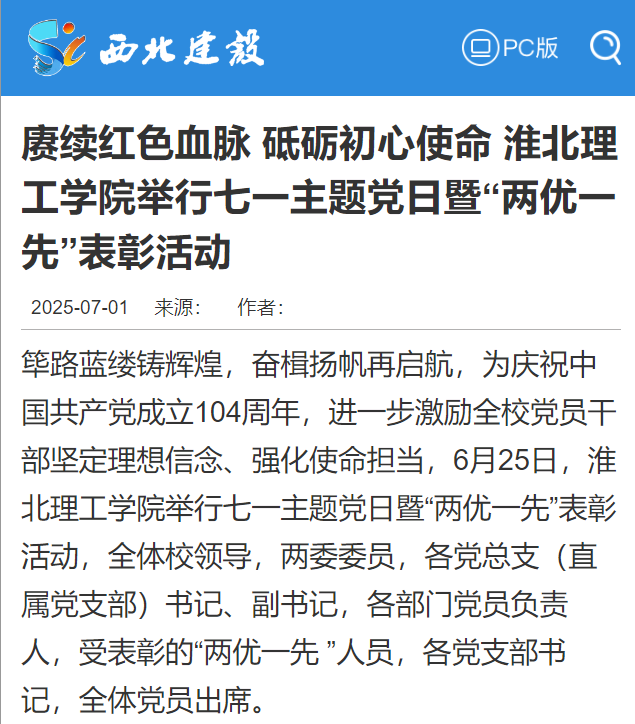 筚路蓝缕铸辉煌,奋楫扬帆再启航,为庆祝中国共产党成立104周年,进一步激励全校党员干部坚定理想信念、强化使命担当,6月25日,beat365英国官方网站举行七一主题党日暨“两优一先”表彰活动,全体校领导,两委委员,各党总支(直属党支部)书记、副书记,各部门党员负责人,受表彰的“两优一先 ”人员,各党支部书记,全体党员出席。对此,西北建设进行了报道: