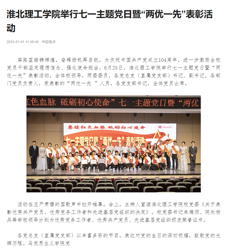 筚路蓝缕铸辉煌,奋楫扬帆再启航,为庆祝中国共产党成立104周年,进一步激励全校党员干部坚定理想信念、强化使命担当,6月25日,beat365英国官方网站举行七一主题党日暨“两优一先”表彰活动,全体校领导,两委委员,各党总支(直属党支部)书记、副书记,各部门党员负责人,受表彰的“两优一先 ”人员,各党支部书记,全体党员出席。对此,大象新闻进行了报道: