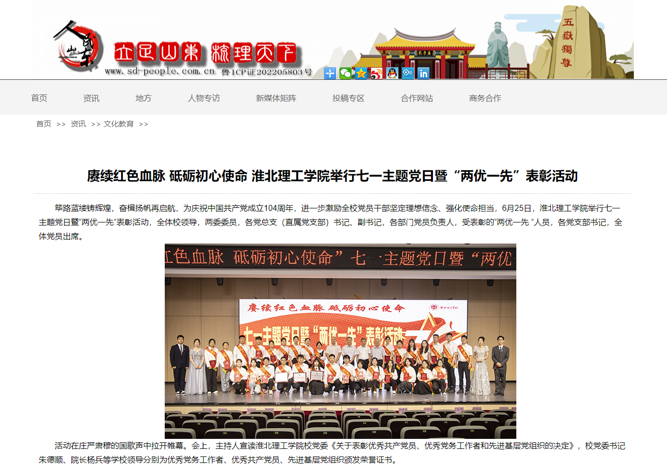 筚路蓝缕铸辉煌,奋楫扬帆再启航,为庆祝中国共产党成立104周年,进一步激励全校党员干部坚定理想信念、强化使命担当,6月25日,beat365英国官方网站举行七一主题党日暨“两优一先”表彰活动,全体校领导,两委委员,各党总支(直属党支部)书记、副书记,各部门党员负责人,受表彰的“两优一先 ”人员,各党支部书记,全体党员出席。
