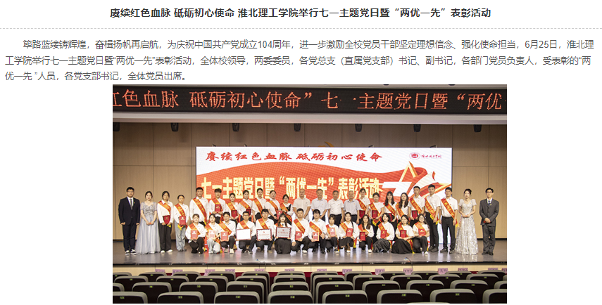 筚路蓝缕铸辉煌,奋楫扬帆再启航,为庆祝中国共产党成立104周年,进一步激励全校党员干部坚定理想信念、强化使命担当,6月25日,beat365英国官方网站举行七一主题党日暨“两优一先”表彰活动,全体校领导,两委委员,各党总支(直属党支部)书记、副书记,各部门党员负责人,受表彰的“两优一先 ”人员,各党支部书记,全体党员出席。对此,中经视点进行了报道: