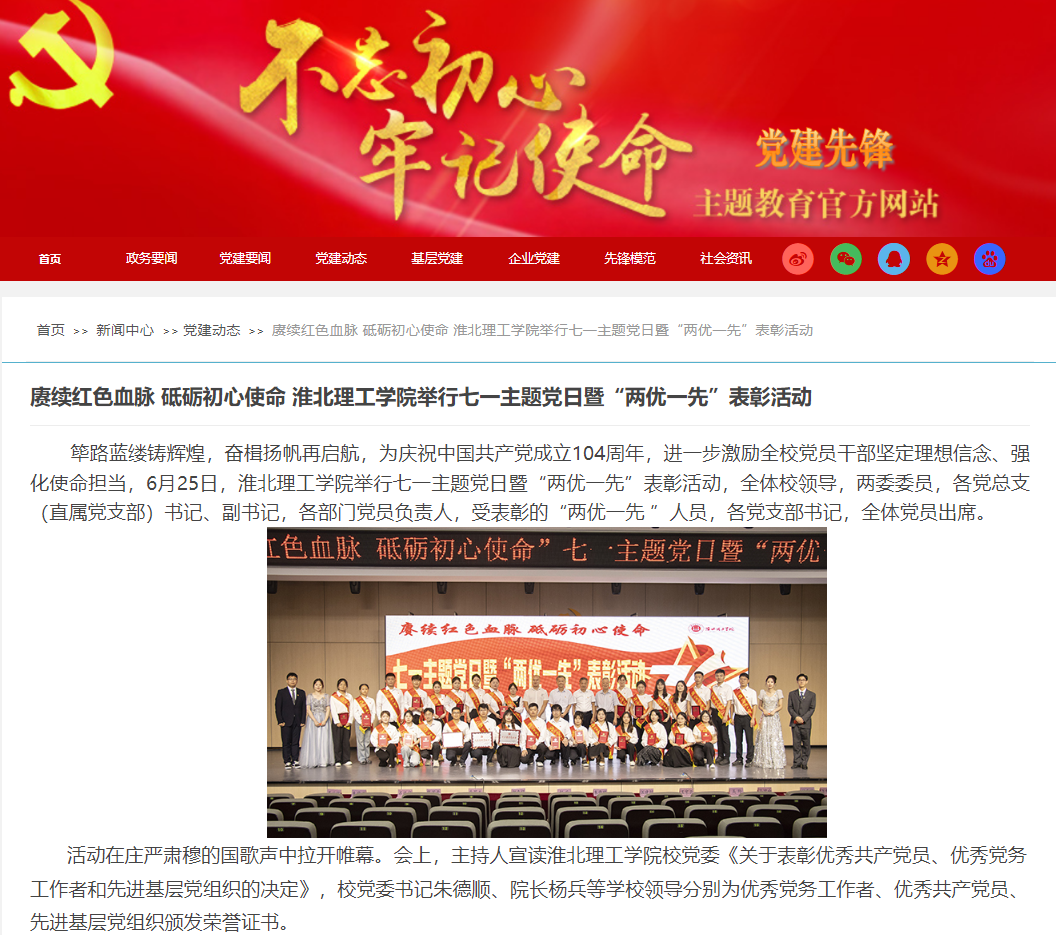 筚路蓝缕铸辉煌,奋楫扬帆再启航,为庆祝中国共产党成立104周年,进一步激励全校党员干部坚定理想信念、强化使命担当,6月25日,beat365英国官方网站举行七一主题党日暨“两优一先”表彰活动,全体校领导,两委委员,各党总支(直属党支部)书记、副书记,各部门党员负责人,受表彰的“两优一先 ”人员,各党支部书记,全体党员出席。对此,党建先锋网进行了报道: