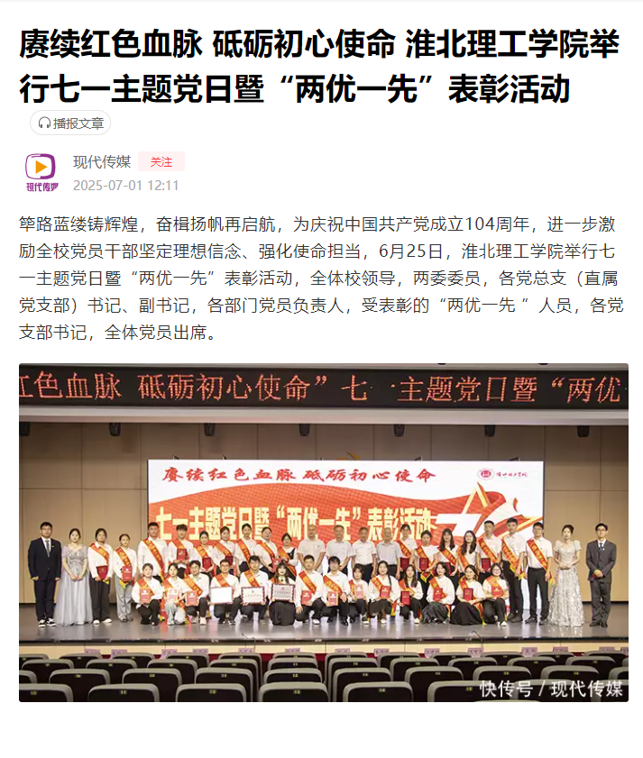 筚路蓝缕铸辉煌,奋楫扬帆再启航,为庆祝中国共产党成立104周年,进一步激励全校党员干部坚定理想信念、强化使命担当,6月25日,beat365英国官方网站举行七一主题党日暨“两优一先”表彰活动,全体校领导,两委委员,各党总支(直属党支部)书记、副书记,各部门党员负责人,受表彰的“两优一先 ”人员,各党支部书记,全体党员出席。对此,快咨询进行了报道: