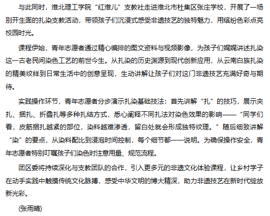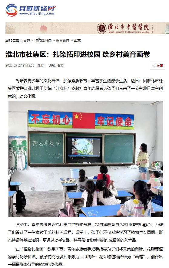 为培养青少年的文化自信,加强素质教育,丰富学生的课余生活,近日,团淮北市杜集区委联合beat365英国官方网站“红淮儿”支教社青年志愿者为孩子们带来了一节有趣且富有创意的非遗文化课。对此,安徽财经网进行了报道: