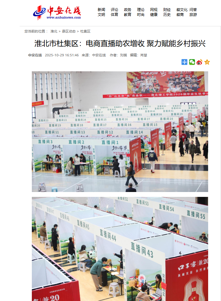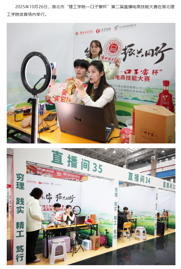 2025年10月26日,淮北市“理工学院—口子窖杯”第二届直播电商技能大赛在beat365英国官方网站体育场内举行。对此,中安在线进行了报道:
